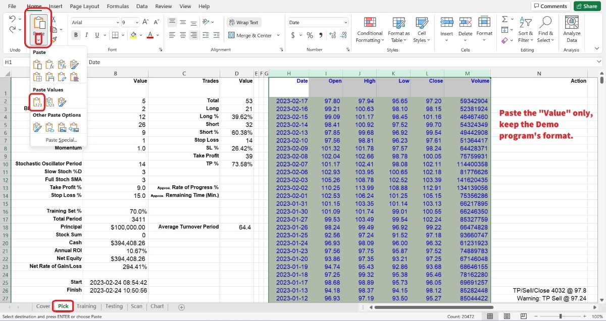 Open the Demo Excel file that contains the VBA Macro for backtesting,